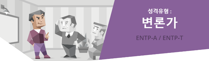 - ENTP 변론가 - 끊임없이 새로운 것을 시도하는 도전적인 자세를 즐기며 호기심이 많고 지적 도전을 즐기는 영리한 사색가