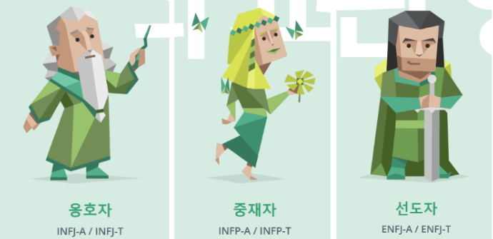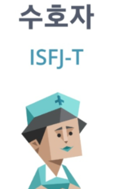 - ISFJ 수호자 - 차분한 성격으로 사람들과 우호적인 관계를 가지는 유형으로 헌시적이며 주변 사람을 보호하려 하는 따듯한 수호자