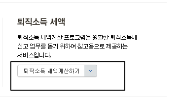 여기서 우리는 퇴직소득세 계산을 해야 하기 때문에 퇴직소득 세액 메뉴를 클릭합니다. 위의 바로가기를 선택하면 홈택스 퇴직소득세 계산기로 이동합니다.