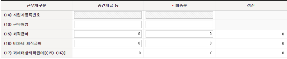이후 소득자 인적사항을 입력하고 퇴직급 현황, 근속연수 등 해당하는 내용을 입력합니다. 귀속년도 같은 경우 퇴직금 소득세 계산기 상 중요 기준이기 때문에 최대한 정확하게 입력합니다.