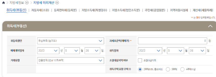 부동산 취득세 계산기 바로가기