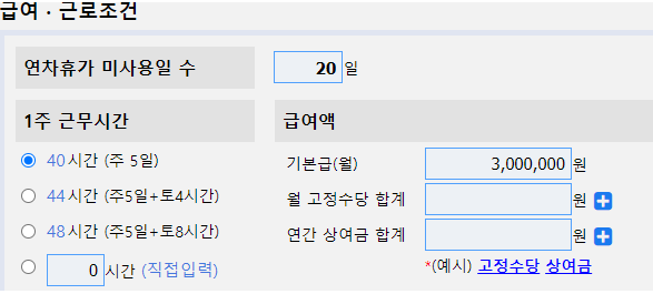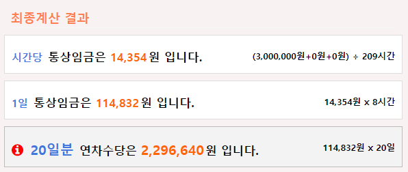 해당사항을 입력한 후 계산하기를 클릭하면 연차수당을 계산해 볼 수 있습니다.