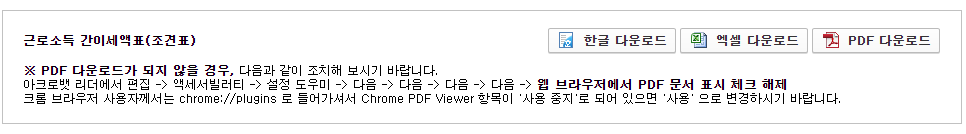 홈택스 홈페이지에서 직접 받고 싶다면 조회발급 - 기타 조회 - 근로소득 간이세액표를 클릭하시면 됩니다. 여기에서 한글, 엑셀, pdf 파일로 선택하서 볼 수 있습니다.