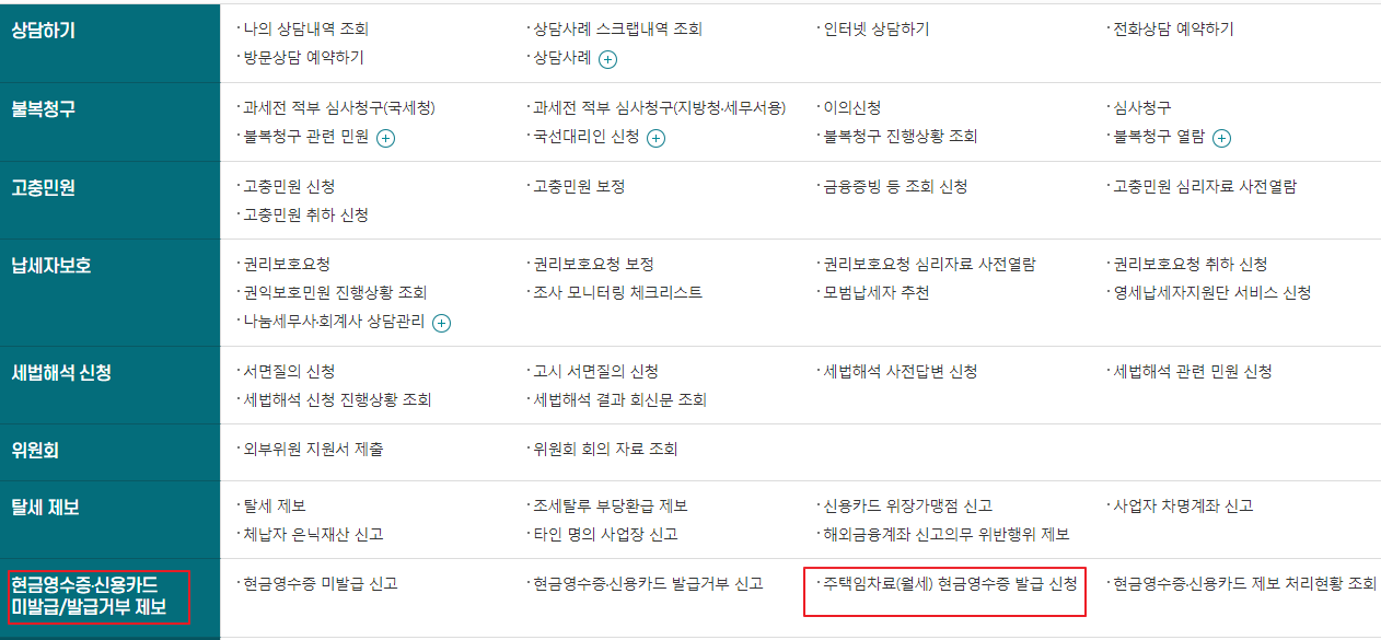 앞서 언급했듯이 월세 소득공제는 현금영수증 발급이기 때문에 국세청 홈택스에서 신청할 수 있습니다.