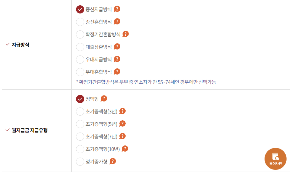 정확한 주택연금 수령액 계산을 위해서는 한국주택금융공사 홈페이지에서 '주택연금 수령액 계산기'를 이용하면 쉽게 주택연금 수령액을 계산해 볼 수 있습니다.