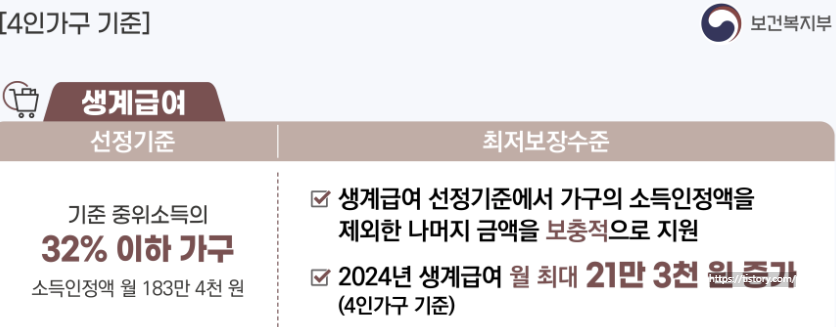 2024년 기초생활수급자 생계급여 자격요건